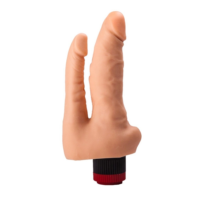 Двойной фаллоимитатор телесного цвета из качественного PVC-материала, предназначен для одновременного анального и вагинального проникновений. Оснащен многоскоростным виброэлементом для дополнительной стимуляции. Интенсивность вибрации регулируется поворотом колёсика в основании игрушки. Для более комфортного применения рекомендуем использовать со смазкой (лубрикантом)