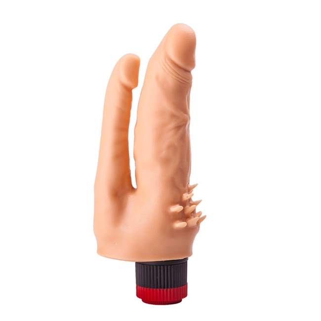 Двойной фаллоимитатор с вибрацией и мягкими шипами для стимуляции клитора.